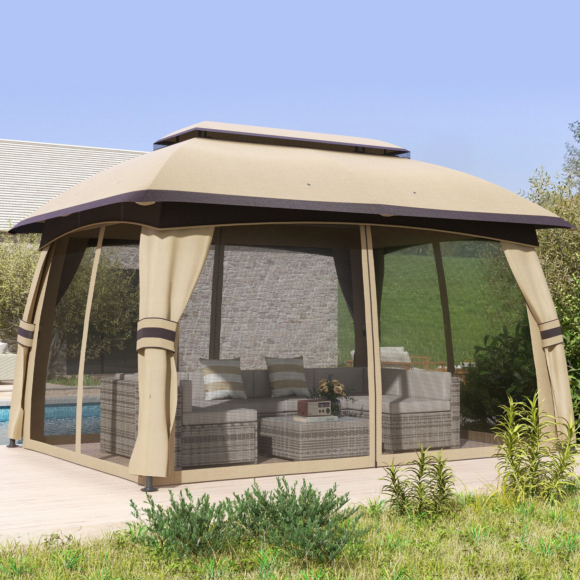 Home > Outsunny 10x13ft Covered Gazebo with Netting Side Walls and 2 Vented Roof, Patio Gazebo Canopy Shelter, Beige