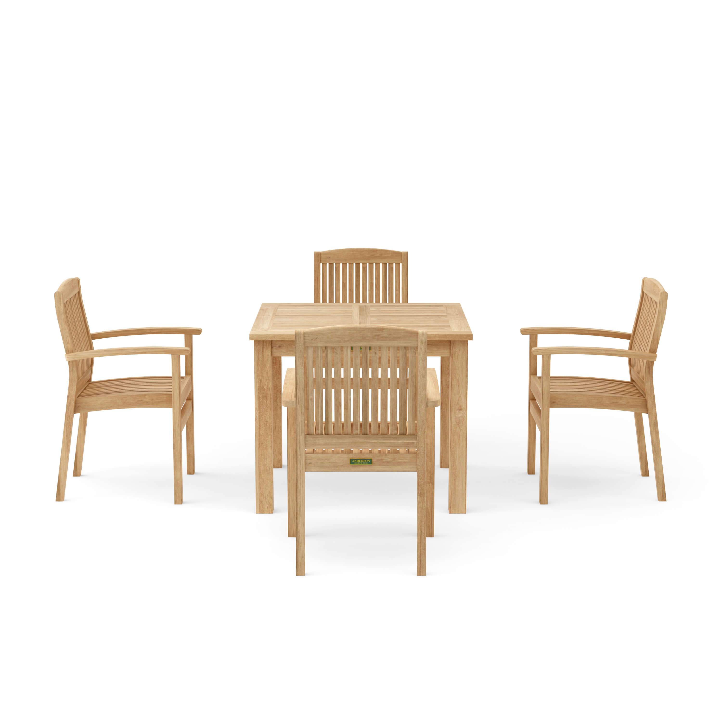 Enjoy the beauty of your backyard and the pleasure of the outdoor dining with Bahama Dining Table and Sahara Stacking Armchairs. This set includes a 35″ square table that fit for 4 people comfortably. Table and chairs are all constructed using mortise and tenon construction for strength and durability. The outdoor furniture made of premium quality plantation grown teak. This set will provide decades of enjoyment for family and friends. Add all weather Sunbrella cushions for more comfort at your choice of colors. Cushions are sold separately.