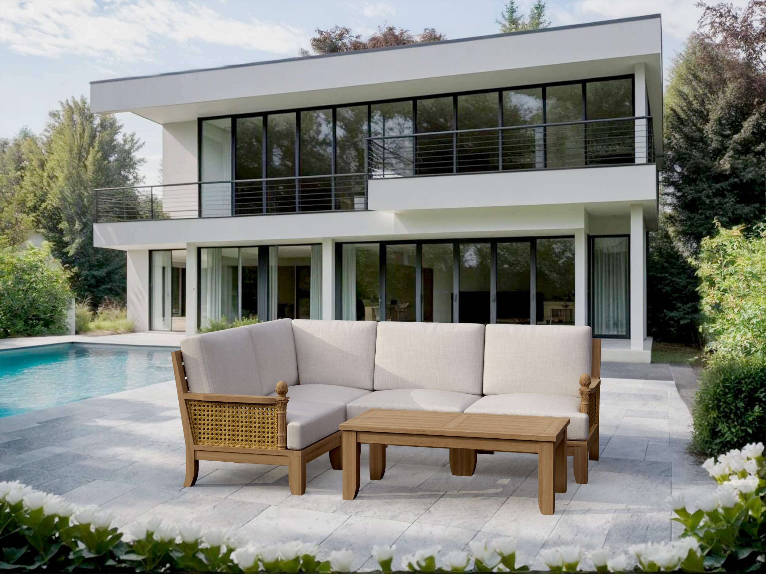 The Luxe Modular Seating Collection exhibits classic elegance with intricate detailing that provides modern comfort. The modular style provides flexibility to accommodate any décor. Built with extra thick Grade A Teak and Sunbrella cushions to last for generations. It comes in knocked down, with easy assembly.