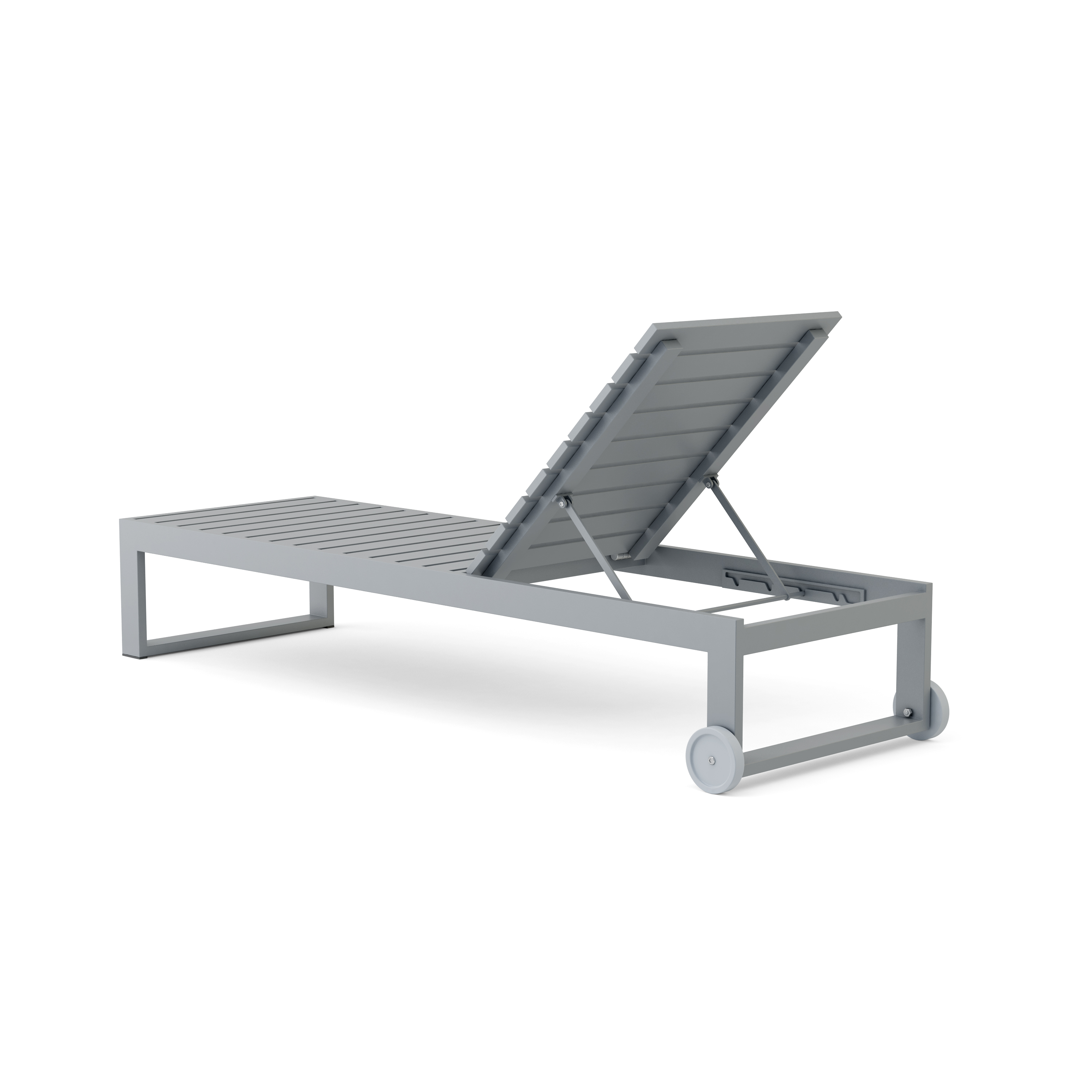 Add a modern look to your pool with the Lucca Sun Lounger 3-piece set. Machine crafted from metal aluminum ensures a lightweight but durable piece of craftsmanship fit for outdoor use. Includes one Ottoman and two Modern Sun Loungers with wheels and 4 different adjustment positions including completely flat. Items arrive completely assembled. Cushion sold separately.